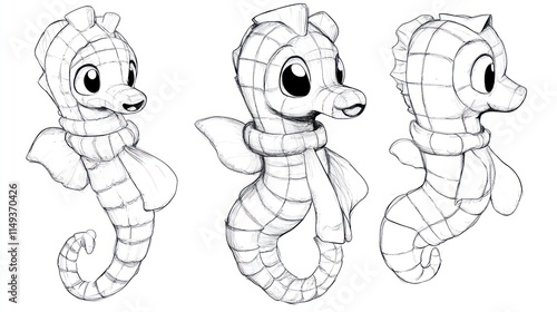 Obraz premium Cute Cartoon Seahorse with Scarf - Children's Coloring Book Page
