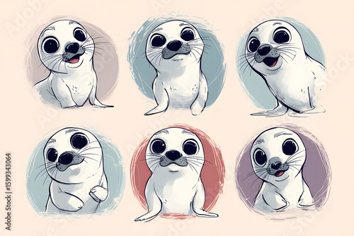 Obraz premium Cute Cartoon Seals in Various Poses and Expressions for Fun Design
