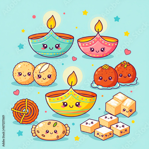Naklejka premium Cute cartoon seamless pattern with animals fruits and fun icons for children wallpaper and design illustration.