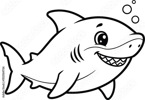 Fototapeta premium Cute Cartoon Shark Outline Vector Illustration, Smiling Baby Shark Line Art Design
