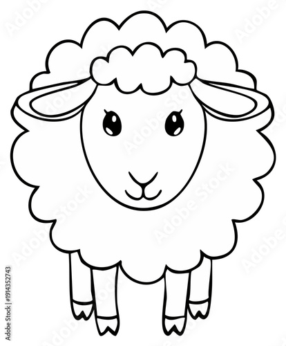 © Сергій Рудик, Fototapeta premium Cute cartoon sheep drawing with fluffy wool and big eyes, simple outline illustration