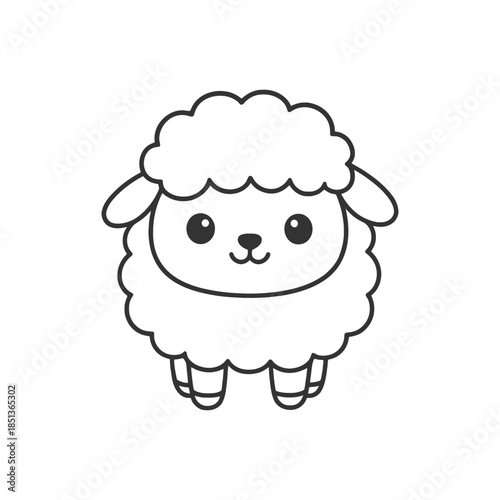 © Sai-man, Obraz premium Cute cartoon sheep standing on grass with fluffy wool and a happy smile