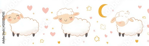 © BrandwayArt, Fototapeta premium Cute cartoon sheep with hearts and stars in playful design