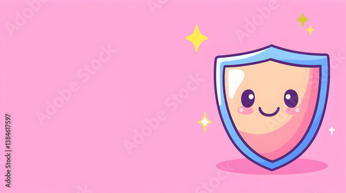 Obraz premium Cute Cartoon Shield with Smiley Face and Sparkles on Pink Background