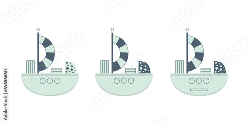 © Aksana, Naklejka premium Cute cartoon ship for children s design, vector illustration in flat style