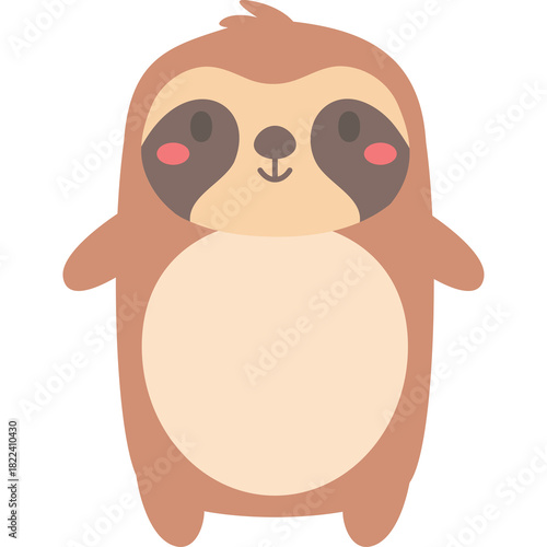 © Abdul, Naklejka premium Cute Cartoon Sloth Character With Round Body And Blushing Cheeks Standing On Transparent Background Adorable Animal Illustration