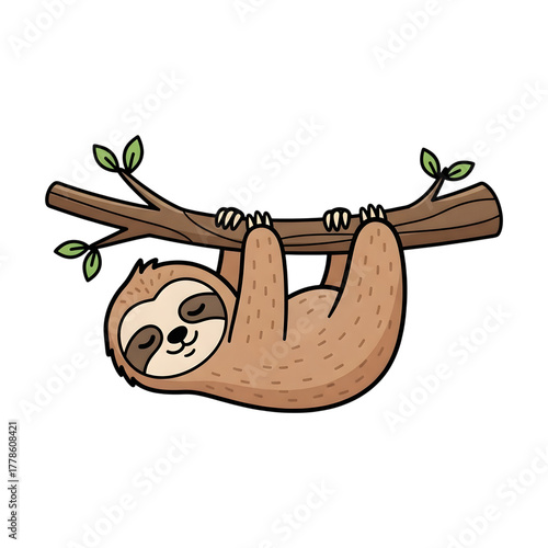 © MDEZAZUL, Obraz premium Cute cartoon sloth hanging from a tree branch isolated on transparent background
