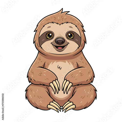 © Lamia, Obraz premium Cute cartoon sloth sitting and smiling, isolated on transparent background