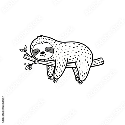 © paulus, Fototapeta premium Cute cartoon sloth sleeping on tree branch illustration