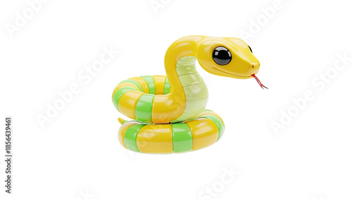 Fototapeta premium Cute cartoon snake with yellow and green stripes on transparent background