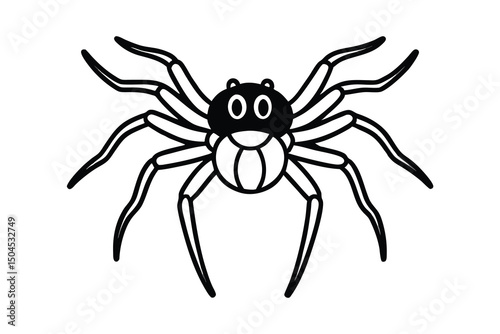 Obraz premium Cute cartoon spider eight legs black white illustration