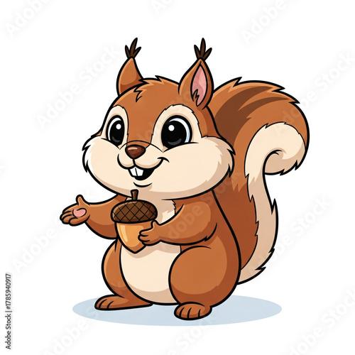© MSTLAYLI, Obraz premium Cute cartoon squirrel holding an acorn isolated on transparent background