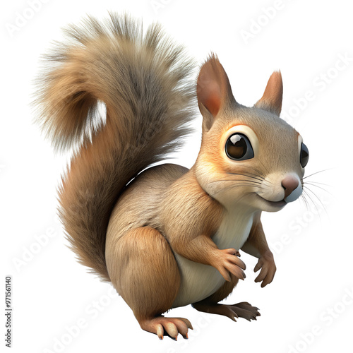 Fototapeta premium Cute cartoon squirrel with fluffy tail.