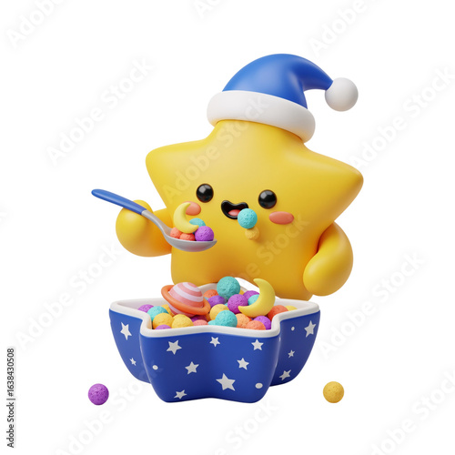 © Meheraj Hosen Mahid, Naklejka premium Cute cartoon star eating cereal isolated on transparent background