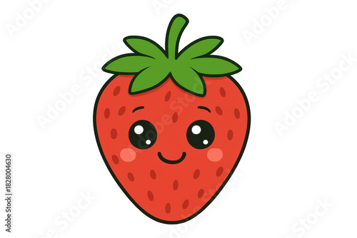 © Michael, Obraz premium Cute cartoon strawberry character vector with smiling face expressing happiness and sweetness, transparent background
