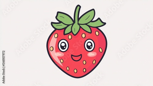 © Prayoon, Obraz premium Cute Cartoon Strawberry Character with Happy Face and Bright Colors