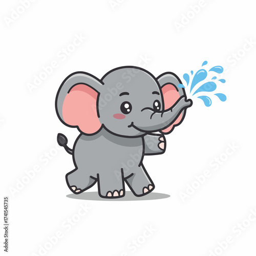 © Hurricanne, Naklejka premium Cute Cartoon Style Elephant Spraying Water with Trunk Illustration