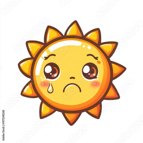 Fototapeta premium Cute Cartoon Sun with a Sad Expression and a Single Tear Drop
