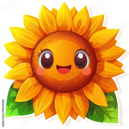 Fototapeta premium Cute Cartoon Sunflower with Smiling Face