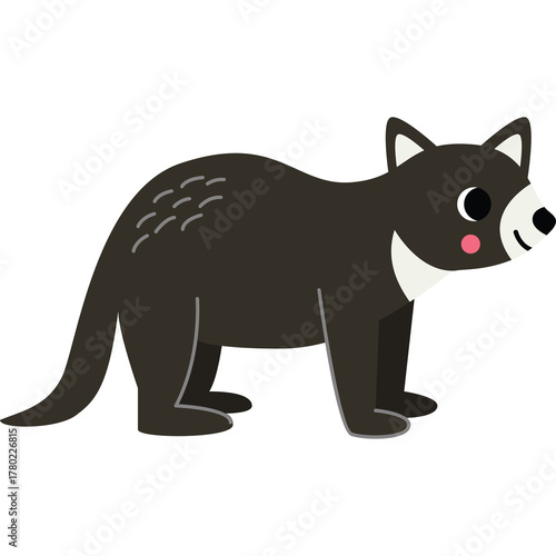 © miryanastitihanikdog, Fototapeta premium Cute Cartoon Tasmanian Devil Illustration with Black Fur White Collar Pink Cheeks and Big Eyes on Transparent Background