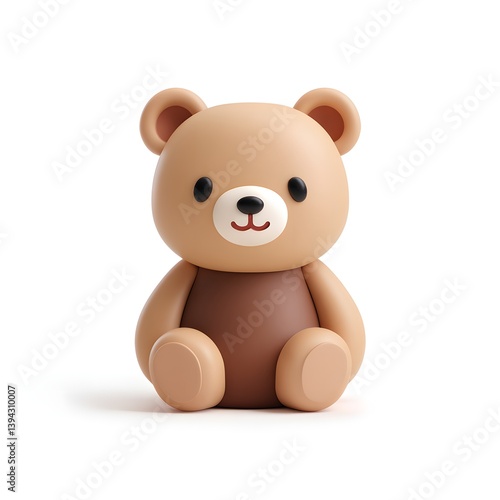 © Dont worry, Naklejka premium Cute Cartoon Teddy Bear Icon in Soft Clay Texture with Brown and Beige Colors on a White Background