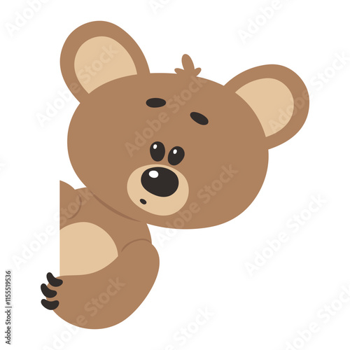 Obraz premium Cute cartoon teddy bear peeking out from behind. Vector isolated on white