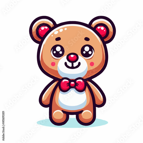 © Nadya, Fototapeta premium Cute cartoon teddy bear with a bow tie on a white background