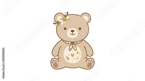 Fototapeta premium Cute Cartoon Teddy Bear with Flower.