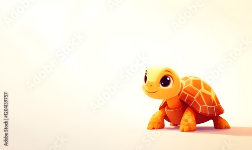 Fototapeta premium Cute cartoon tortoise illustration, yellow, smiling, white background.