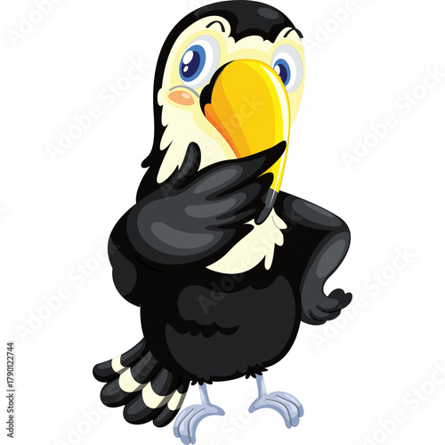 Naklejka premium Cute Cartoon Toucan Bird With Big Yellow Beak And White Chest Standing On...