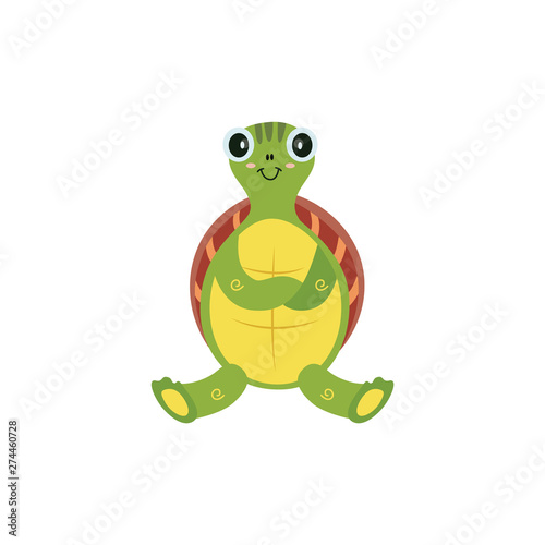 Fototapeta premium Cute cartoon turtle isolated on white background, childish animal character...