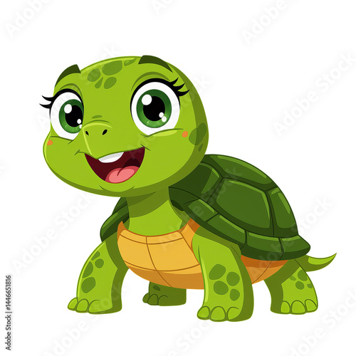 Fototapeta premium Cute Cartoon Turtle Smiling, Green, Transparent Background.