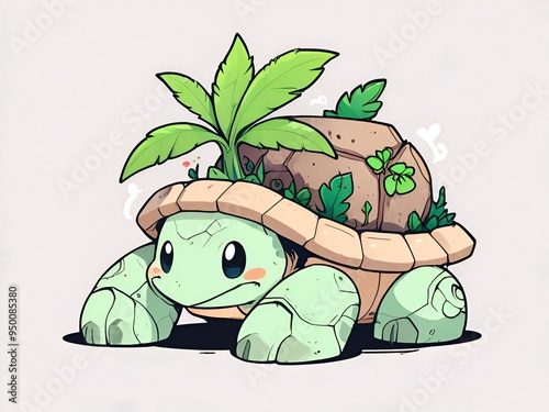 © SetCartoon, Fototapeta premium Cute Cartoon Turtle with a Tree on Its Back