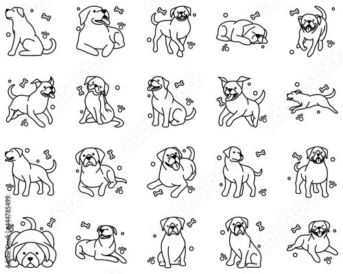 © Sakarapap, Naklejka premium Cute Cartoon Vector Illustration icon set of a big dog. It is outline style.