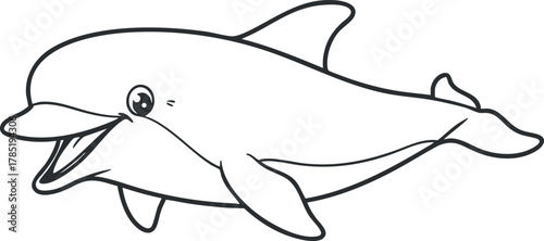 © vadymstock, Fototapeta premium Cute cartoon vector illustration of a smiling dolphin, perfect for children's education and marine-themed designs