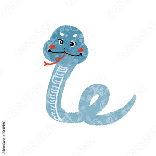 Fototapeta premium Cute cartoon version of blue snake