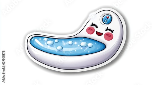 © Patchayanit , Obraz premium Cute Cartoon Water Droplet Character with Smile and Bubbles