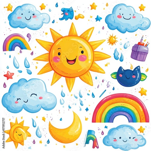 © Jiranath, Naklejka premium Cute Cartoon Weather Icons Illustration