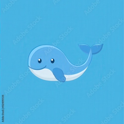 © Arti, Obraz premium Cute cartoon whale illustration on a blue background with smile