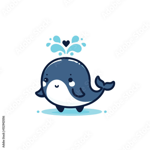 © attha, Obraz premium Cute cartoon whale with water spray and hearts
