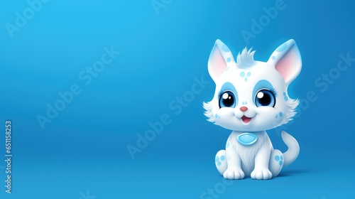 Fototapeta premium Cute cartoon white cat with blue background