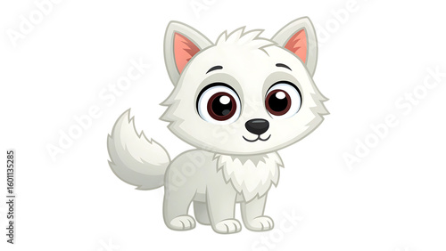 Obraz premium Cute cartoon white wolf cub standing on a transparent background isolated on transparent background