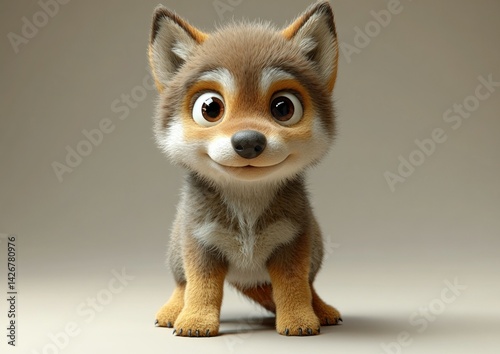 Obraz premium Cute cartoon wolf pup, studio shot, light background, possible use for...