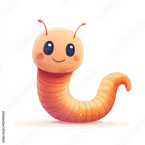 Fototapeta premium Cute Cartoon Worm Character in Nature: A Whimsical Illustration on a Bright White Background