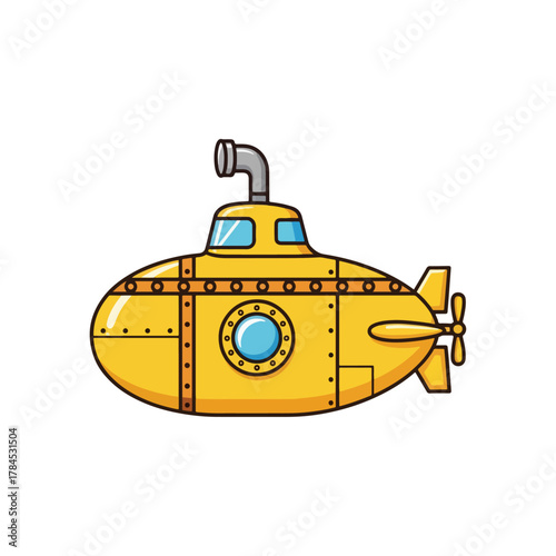 Fototapeta premium Cute cartoon yellow submarine illustration, classic underwater sea vehicle for exploration adventure