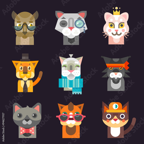 © olegberesnev, Fototapeta premium Cute cat avatar illustration set. Flat vector stock illustration set.