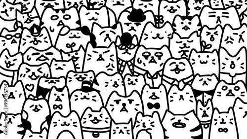 Fototapeta premium Cute cat background and wallpaper (white-black)