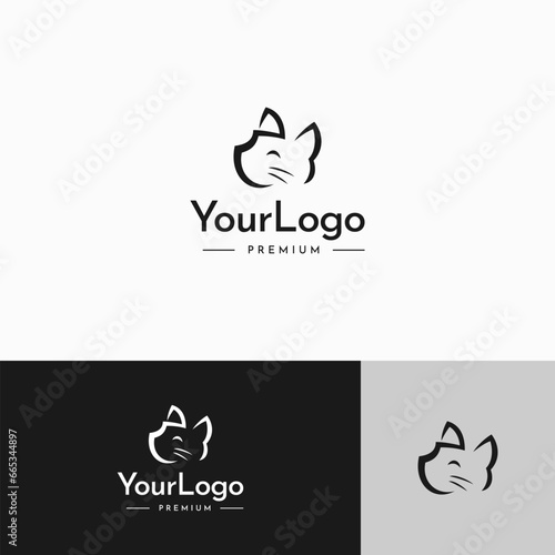 Fototapeta premium Cute cat cartoon simple line logo vintage