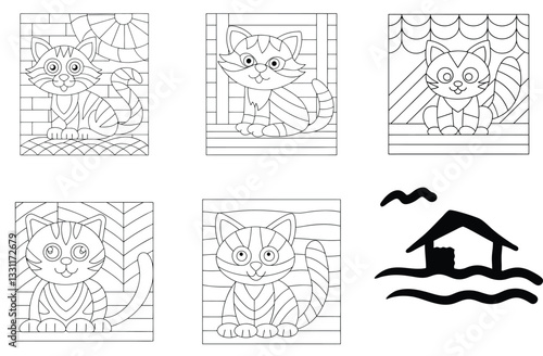 Fototapeta premium Cute Cat Coloring Pages: Printable Kitten Line Art for Kids & Adults, Black...
