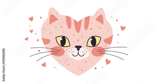 Obraz premium Cute cat face with heart shape and whiskers surrounded by hearts